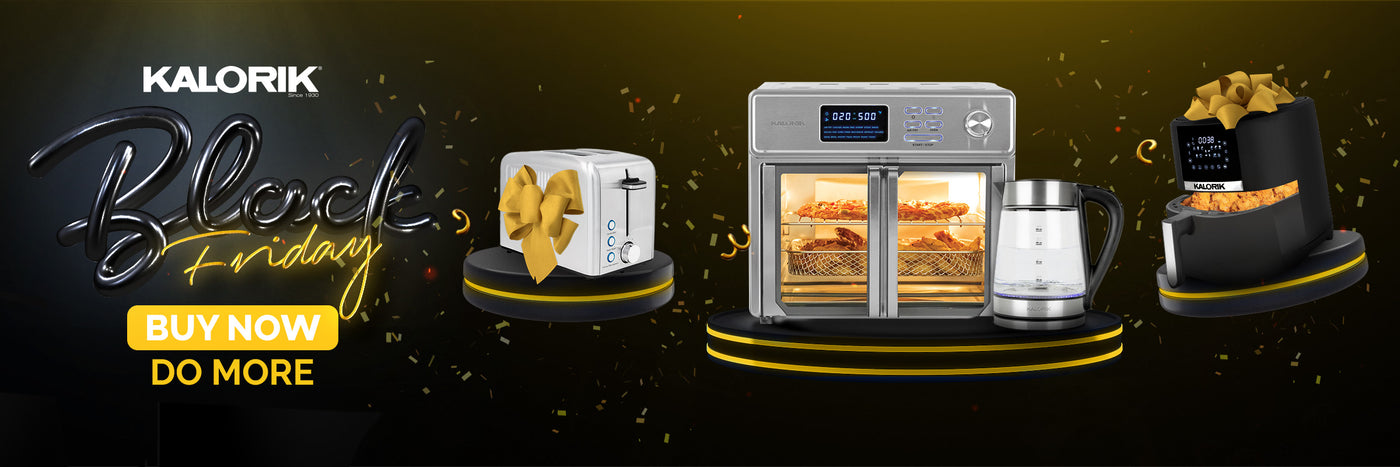 Experience total versatility in the kitchen with Kalorik's Air Fry Ovens and Air Fry Oven Grills - offering a complete line of baking, toasting, roasting, grilling, rotisserie, braising, searing, dehydrating, and broiling functions for ultimate control in your cooking.